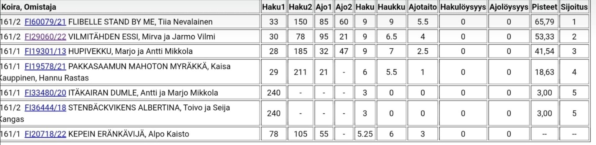 5. FI55039/19 PIHILAJANPERÄN MELODIA, Schröder Michael ja Riina 25,79 p.