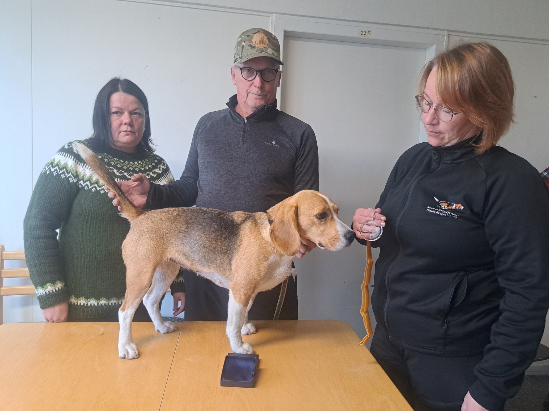 Noviisikokeeseen 3.12 osallistui 3 noviisibeaglea ohjaajineen. Kisan voittaja beagle Papinniemen Ingrid om. Jyrki Erkkilä (kuvassa ylempänä). Alemmassa kuvassa opastuomari Aki Hämäläinen (vas.) ja ryhmätuomari Arto Sippala (oik.).